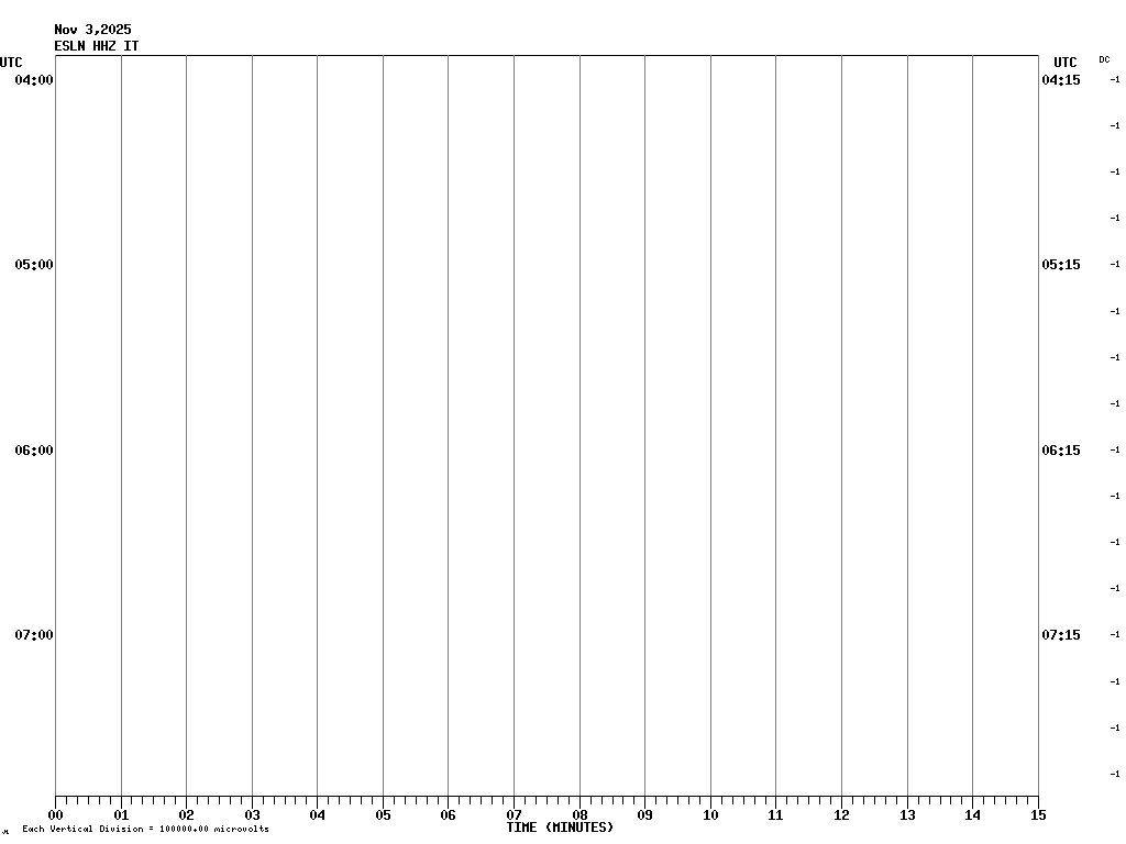 In questa pagina sono visualizzate le tracce registrate nelle ultime 24 ore ad alcune stazioni sismiche della rete permanente INGV-OE ubicate nell'area vulcanica etnea e delle Isole Eolie. In ogni schermata sono rappresentate 4 ore di registrazione. Le schermate corrispondenti alle diverse fasce orarie possono essere selezionate dalla tabella riportata in alto. Ogni riga rappresenta 15 minuti di registrazione e ogni minuto è separato dalle linee verticali. Gli orari sono espressi in UTC. Pertanto per ottenere l'ora locale occorre aggiungere 1 ora quando è in vigore l'ora solare o aggiungere 2 ore quando è in vigore l'ora legale.