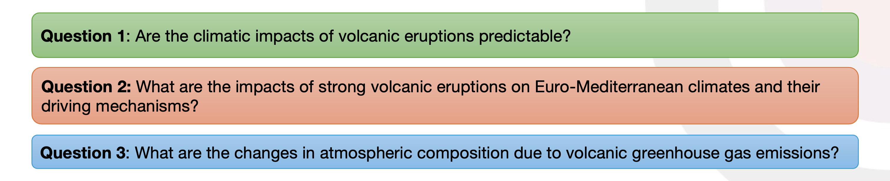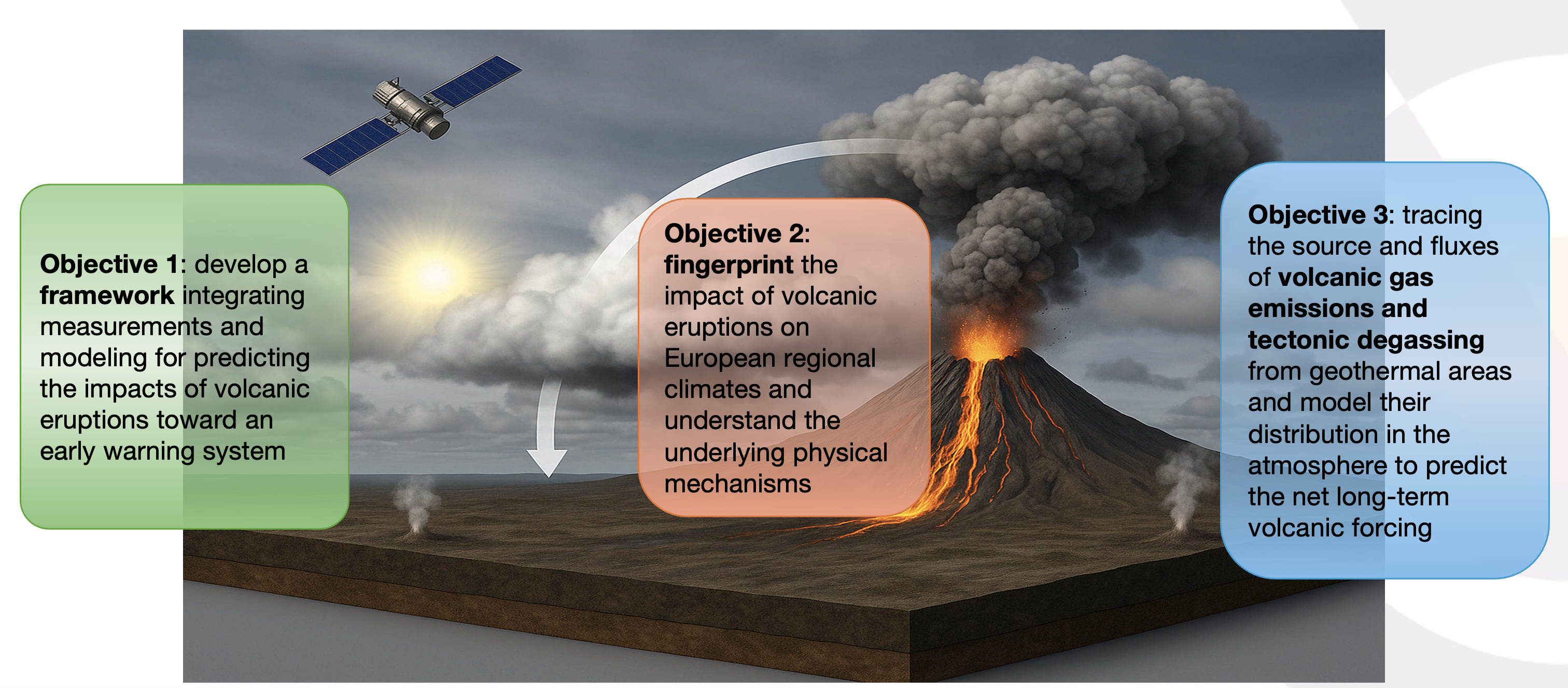 DEMETRA pursues three closely connected scientific objectives aimed at improving the understanding and predictability of volcanic impacts on climate.